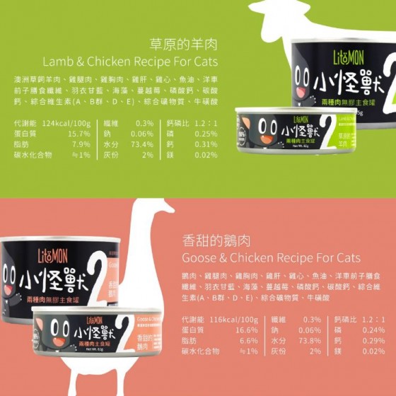 【怪獸部落】貓︱小怪獸 1&2種肉無膠主食罐