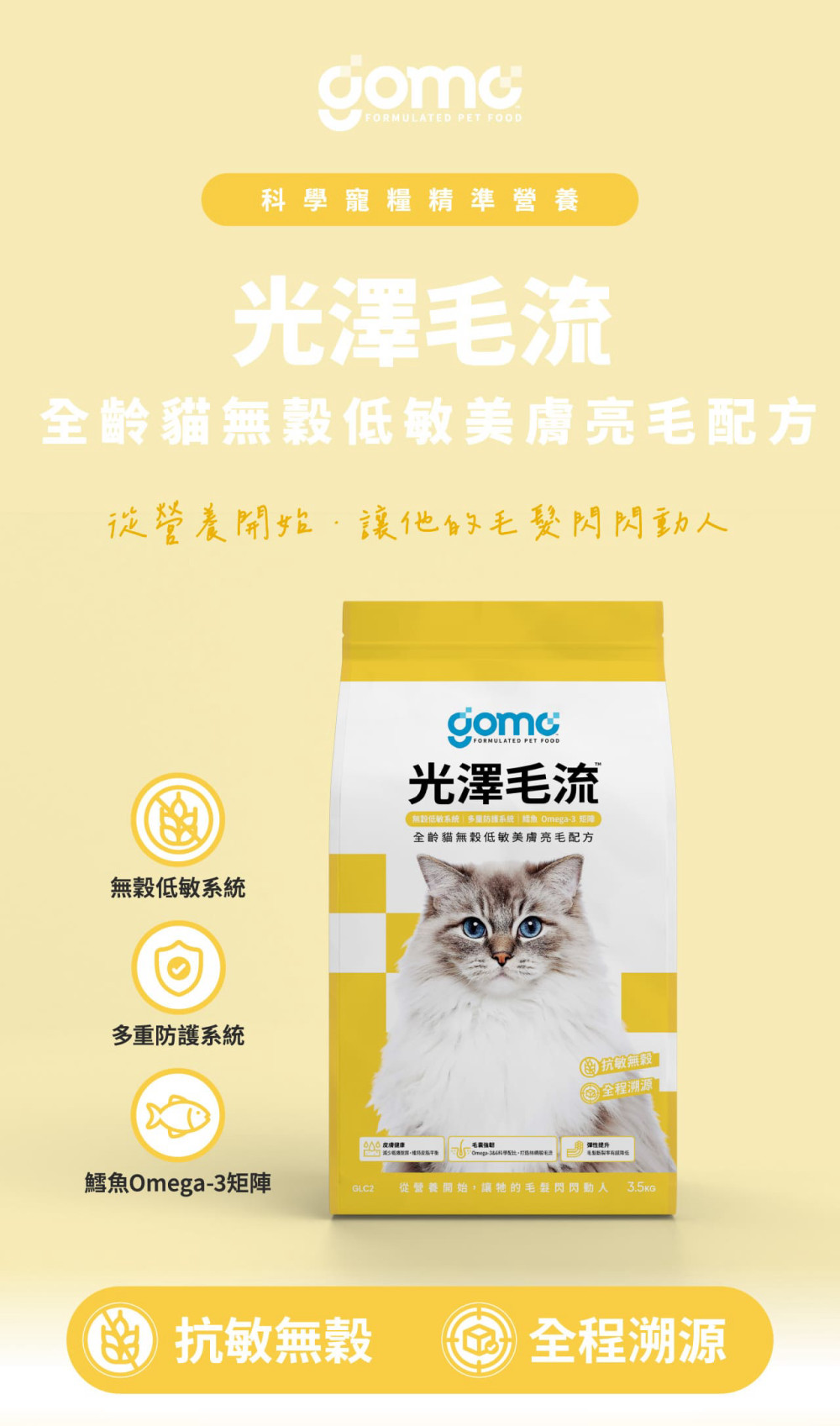 【GOMO】貓|光澤毛流 全齡貓低敏美膚亮毛配方