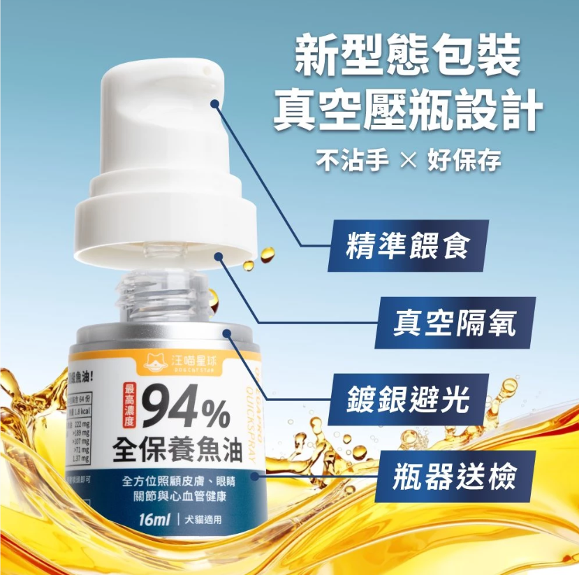 新品嘗鮮價【汪喵星球】貓狗通用|94%高濃度Omega-3魚油壓瓶