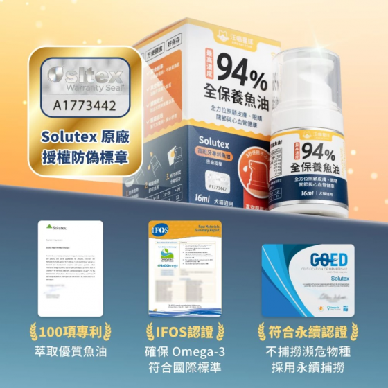 • 嚴選西班牙專利Solutex魚油(原廠授權)