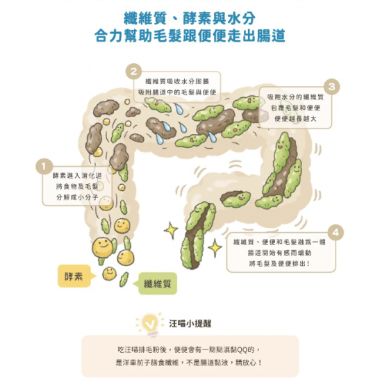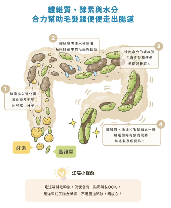 🅰️汪喵星球排毛粉成分為天然纖維與消化酵素、天然魚油&亞麻仁油,可幫助維持腸道健康及幫助糞便潤滑。雖然狗狗沒有頻繁舔毛的習性,但若玩耍時食入大量毛髮,還是可以補充排毛粉來幫助排除毛髮及幫助腸胃蠕動喔。