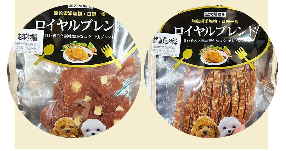 採用純天然鮮嫩雞筋肉與牛皮碎骨棒特製而成 ,質地細膩且耐嚼。