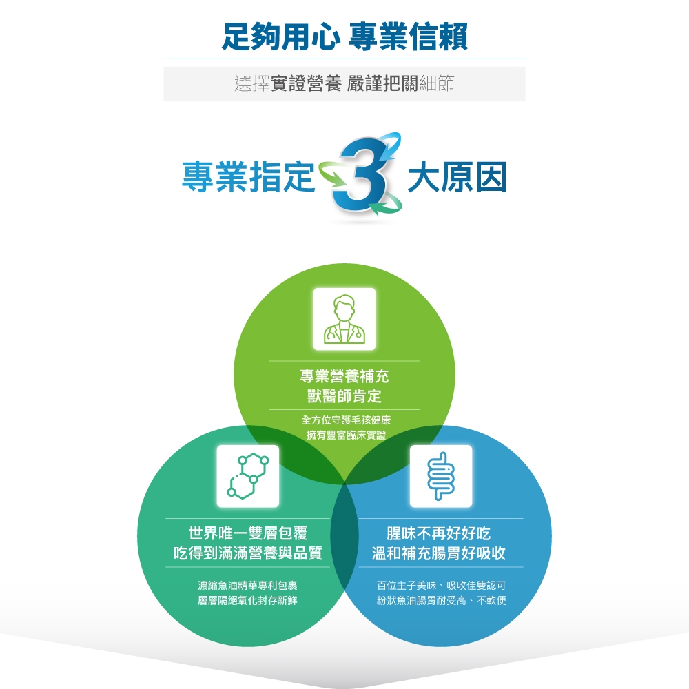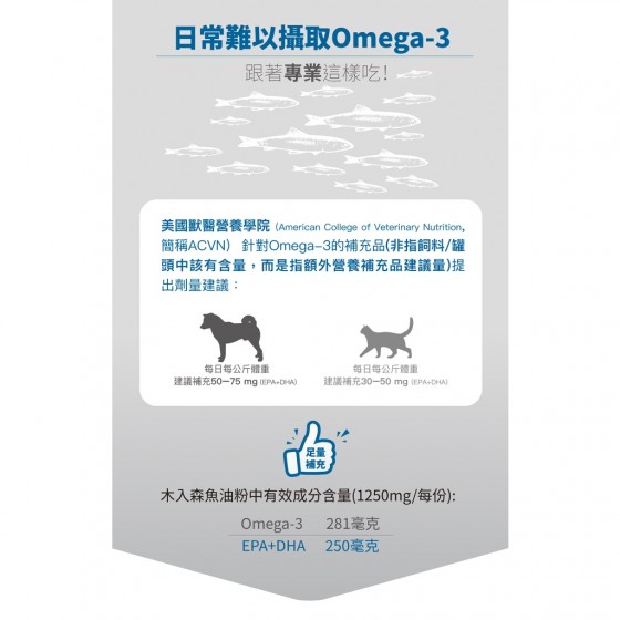 - Omega-3 優質營養補給:強化體質、敏感舒緩