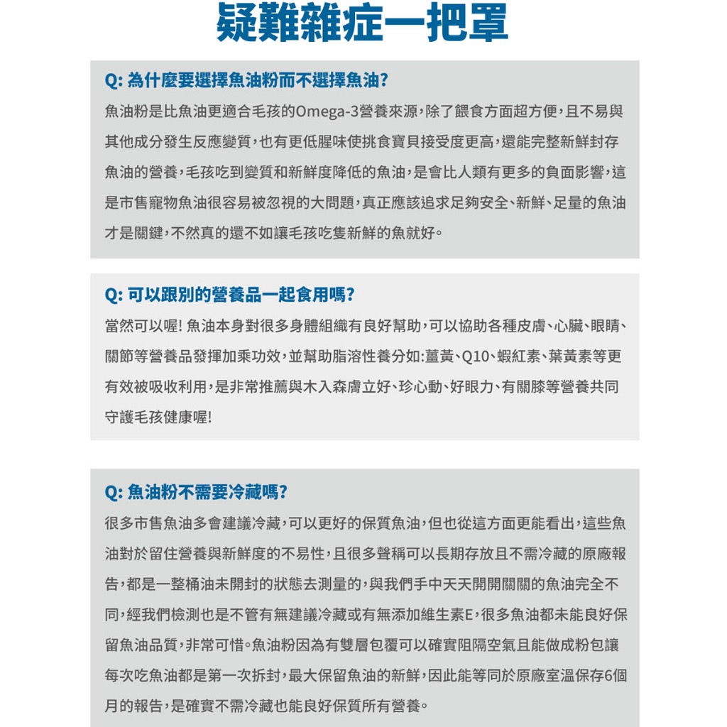 - 超高適口性,8 成以上貓咪狗狗也愛吃的「魚油」