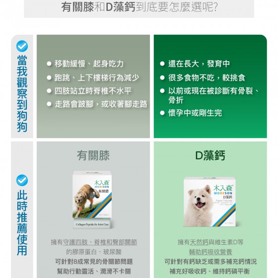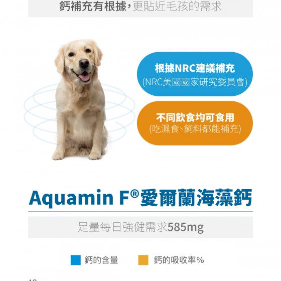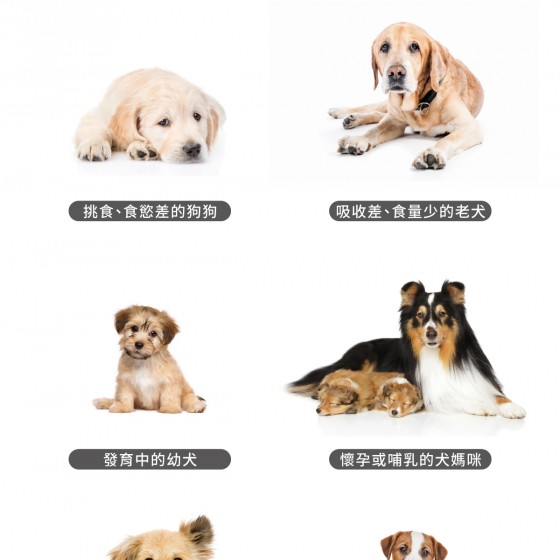 可做為「幼犬老狗」、「懷孕哺乳犬」、吃「飼料罐罐」或「鮮食生食」狗狗缺鈣的重要營養補充。