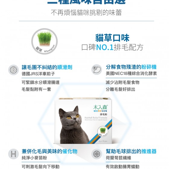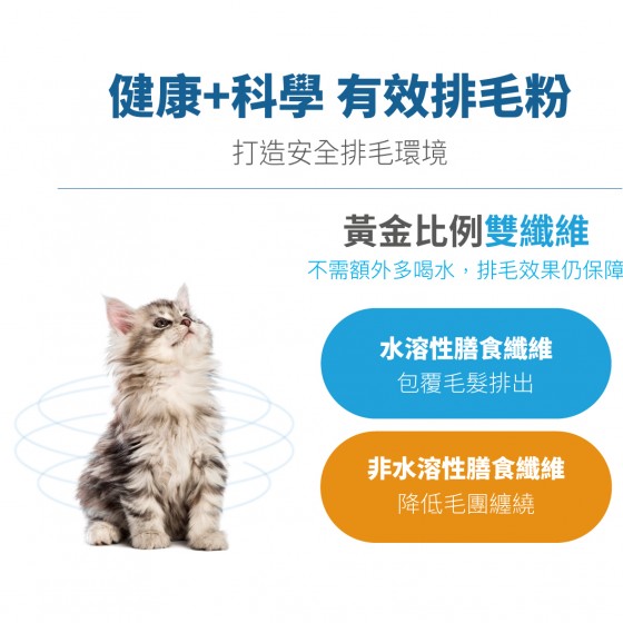 克服排毛粉需要多喝水、易卡便腹脹等缺陷,經千位見證者有感回饋,兼具美味營養與顯著速效排毛。還在吃化毛膏幫貓咪排毛嗎? 不如試試更天然、更安全健康,但同樣美味的排毛粉吧!