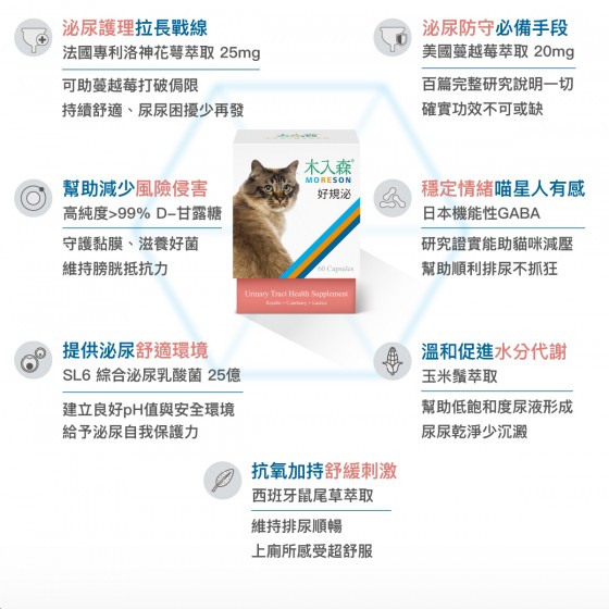 木入森 貓咪好規泌,全方位貓泌尿保健,使用「蔓越莓」等泌尿道黃金 3 效配方等營養搭配,使小便順暢、黏膜健康、泌尿道維持抵抗力,幫助泌尿道護理,可作為平日泌尿道保健補充、護理營養。