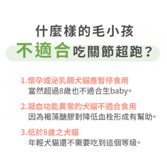 ➡️本品由獸醫師親自調配 ➡️強化關節、關節保健、維持軟骨健康 ➡️關節保養 ➡️補充骨質保健所需養分 ➡️適合8歲以上初老、行動卡卡的毛小孩 打造毛孩關膝寧、步若飛的行動骨本🐇