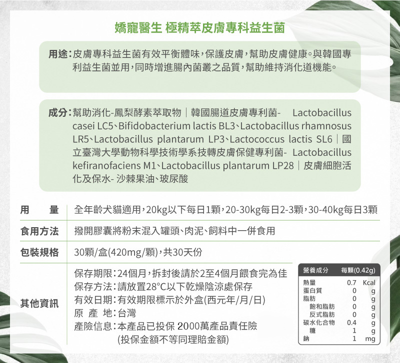 【嬌寵醫生】貓狗通用 保健品|皮膚專科益生菌 30粒
