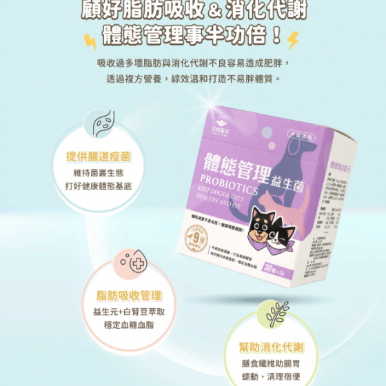 同時,如果單純透過控制飲食、運動或改吃濕食就成功減重的毛孩,也確實不一定要吃這款益生菌喔!