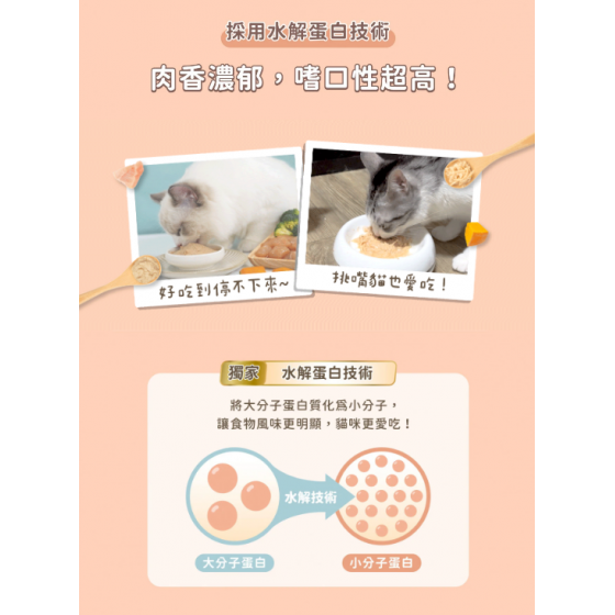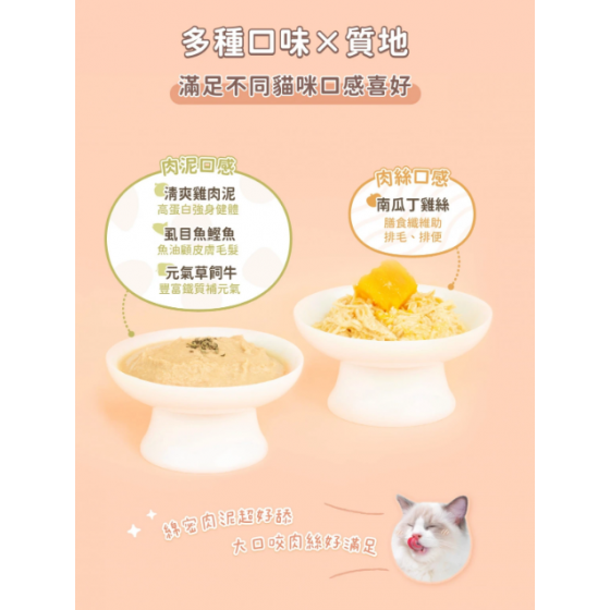 低脂罐使用新鮮原肉製成,並加入天然食材熬煮的高湯,香氣超濃郁!低內臟配方設計,減少腥味、口味更清爽!綿密肉泥&嚼感肉絲兩種質地選擇,可以滿足不同口感喜好的貓咪唷~