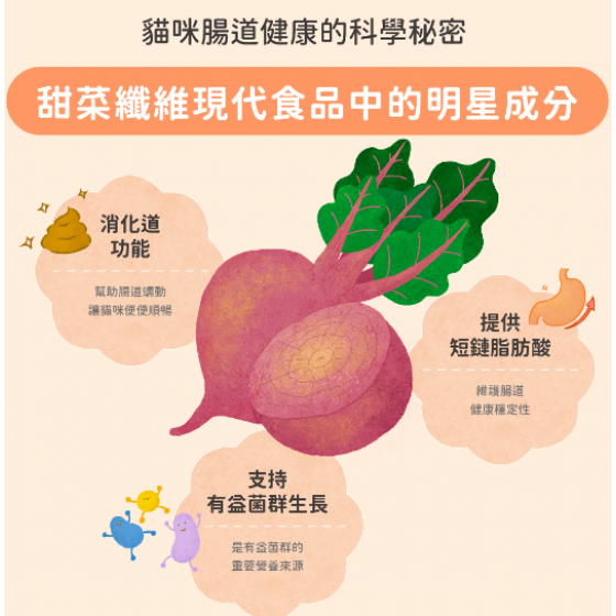 ➂ 甜菜纖維:支持有益菌群生長、幫助腸道蠕動、維持腸道健康穩定性