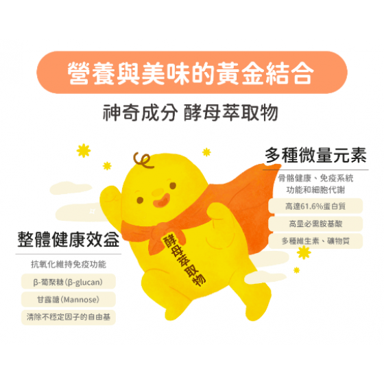 ④ 酵母萃取物:多種微量元素高達61.6%蛋白質,骨骼健康維持免疫功能