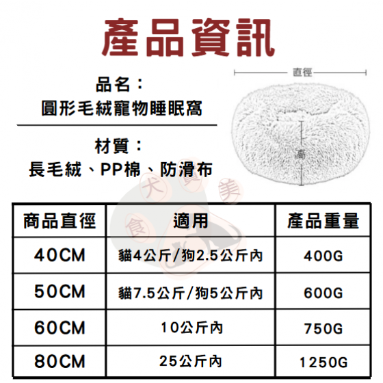 【食犬實美】貓狗圓形長毛絨寵物窩