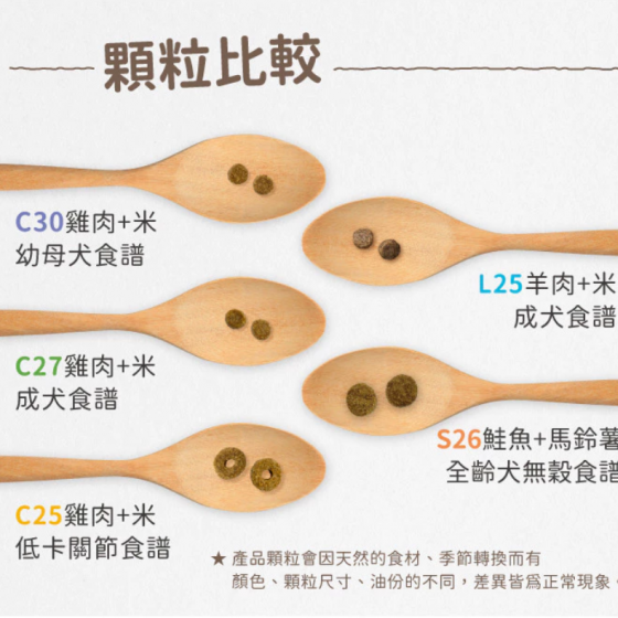 ✅成分:雞肉(18%),雞肉粉(18%),整粒白米 (14%),大麥,高粱,乾酵母,雞脂(以混合生育醇保存),甜菜乾,亞麻籽,氯化鉀,氯化鈉,乾菊苣根,羽衣甘藍,奇亞籽,南瓜,藍莓,柳橙,海帶,椰子,菠菜,胡蘿蔔(1%),蘋果(1%),木瓜(1%),絲蘭萃取物。