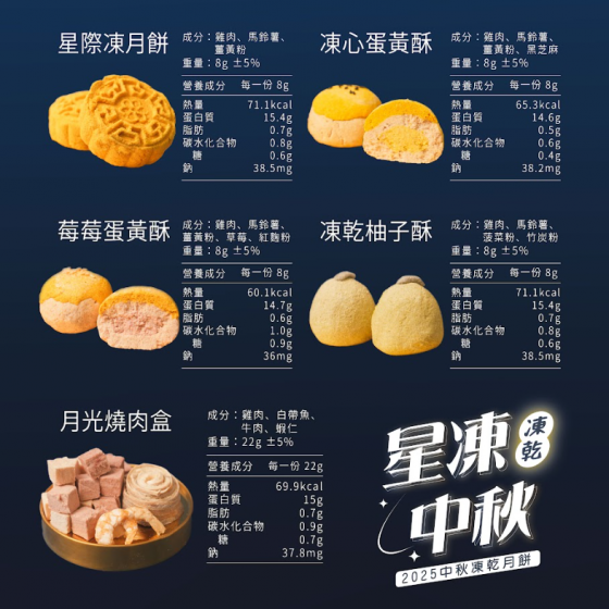 🌕貓狗適用🌕 讓毛孩一起品味專屬的中秋饗宴, 五入原肉凍乾,酥脆肉香、層次豐富, 每一口都是幸福滋味。