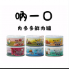 吶一口鮮肉貓罐以肉多多為主要特色,六種不同組合,讓貓咪擁有多重享受。