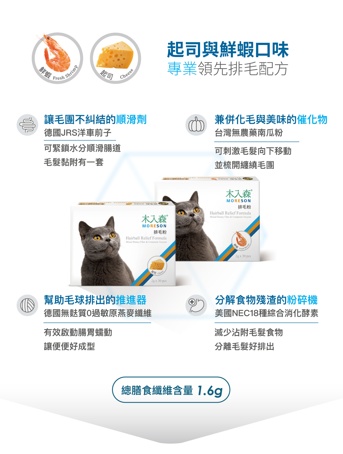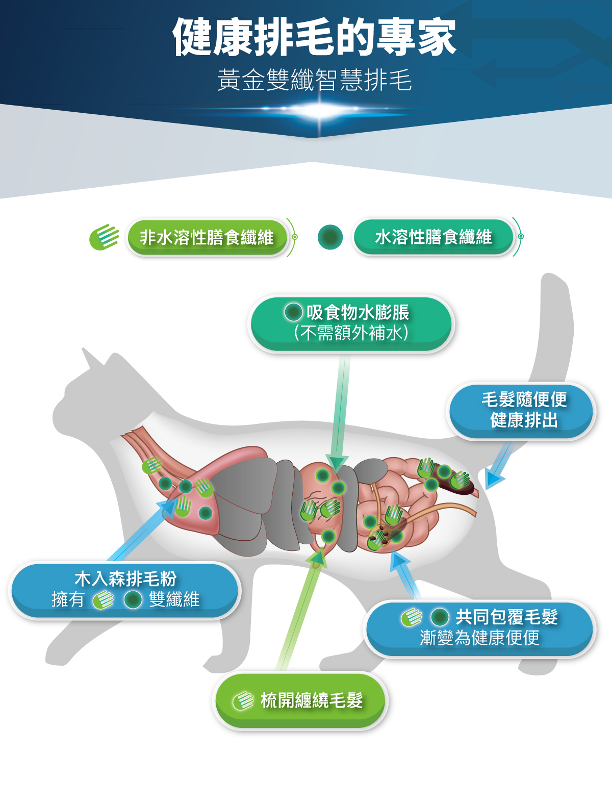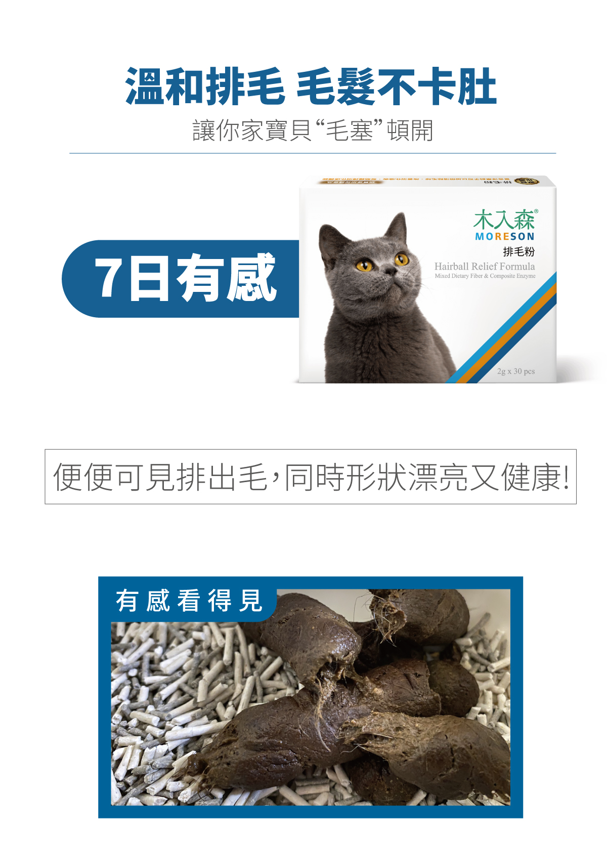 木入森排毛粉是用科學排毛的專業排毛粉,不只單純添加各種專利纖維與酵素排毛,且是真正破解「水溶性纖維 與 非水溶纖維 黃金比例」的排毛粉。