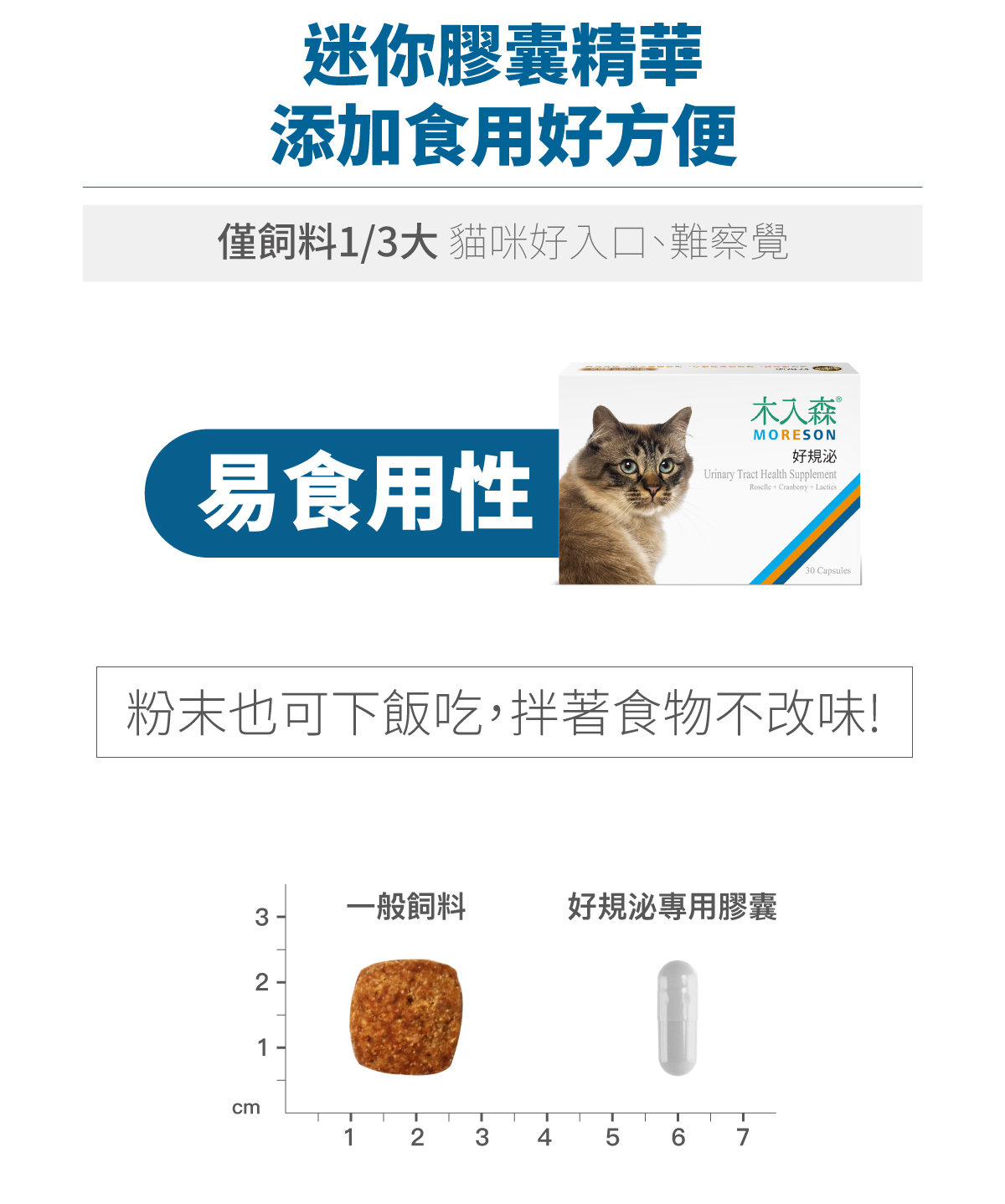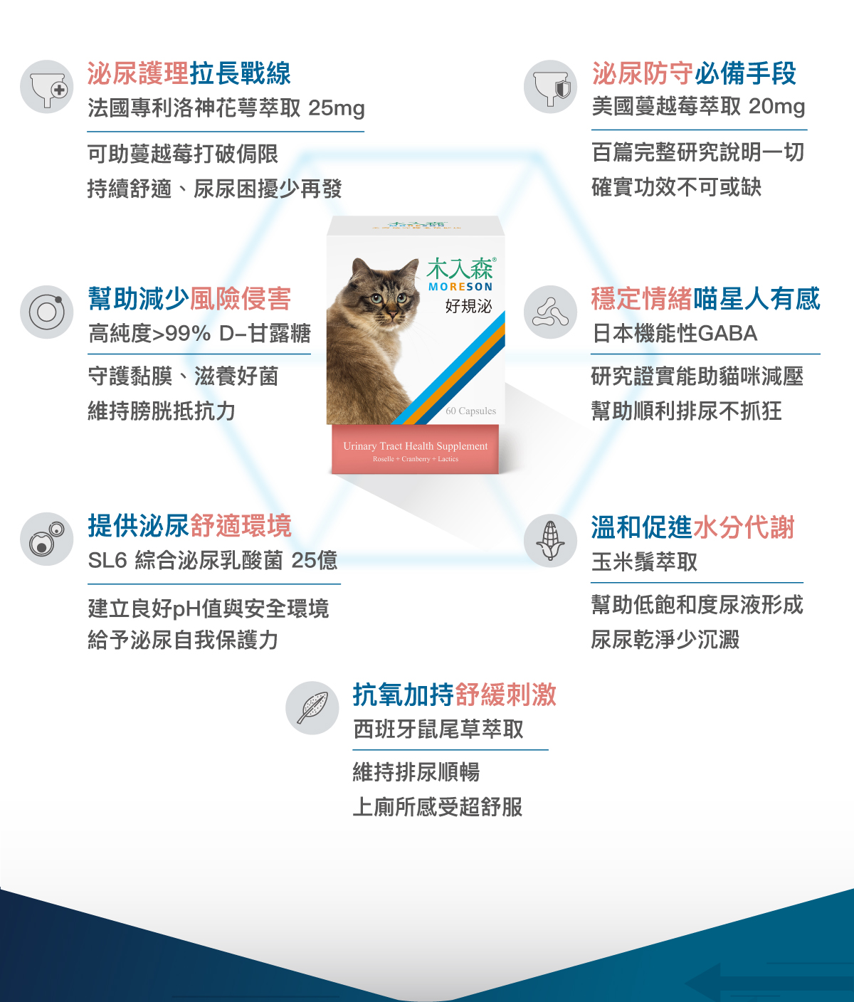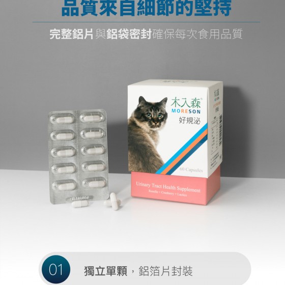 木入森 貓咪好規泌,全方位貓泌尿保健,使用「蔓越莓」等泌尿道黃金 3 效配方等營養搭配,使小便順暢、黏膜健康、泌尿道維持抵抗力,幫助泌尿道護理,可作為平日泌尿道保健補充、護理營養。