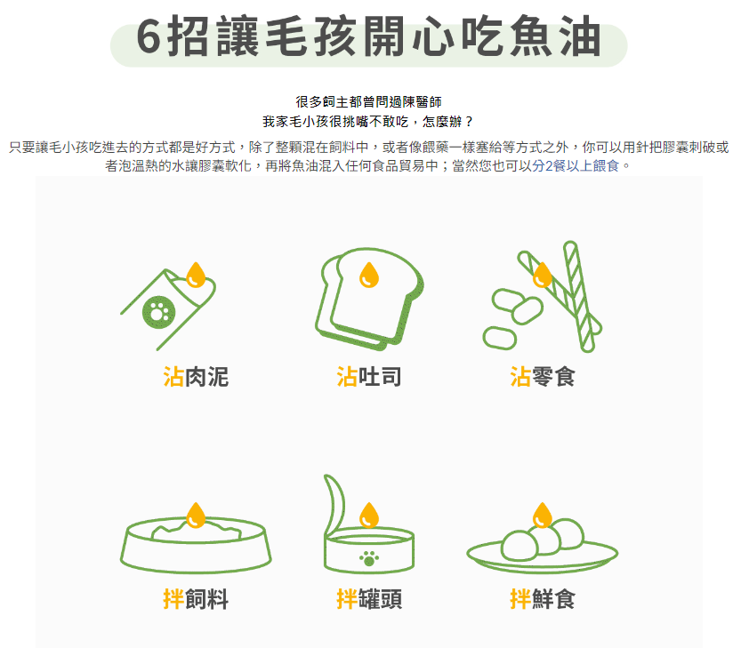 Q7:魚油怎麼餵?毛孩不吃魚油怎麼辦?