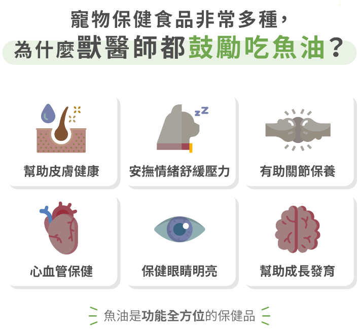 魚油屬於日常保健品,全齡犬貓適用,建議天天補充足劑量才能維持穩定效果。