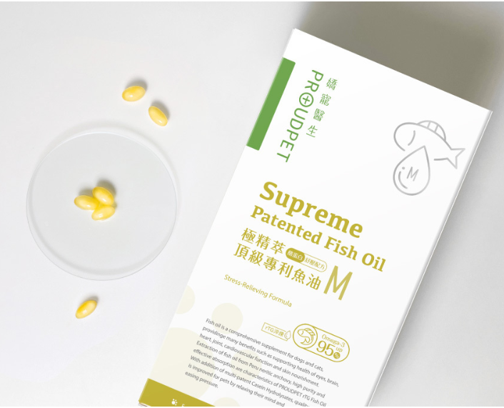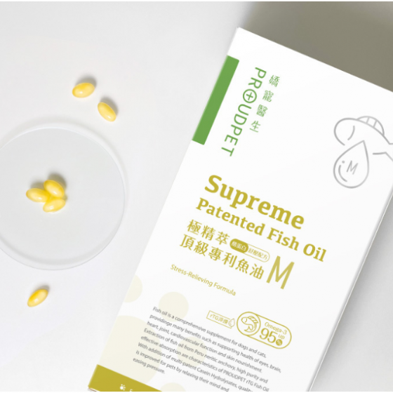 嬌寵醫生魚油是寵物界首創酪蛋白舒壓魚油,也是寵物界最高 98.6% Omega-3 高濃度魚油,通過 SGS 與 IFOS 五星國際認證,選用祕魯淺海鯷魚、rTG淬練,並添加專利酪蛋白,能幫助情緒放鬆、舒緩焦慮,同時護皮膚、護關節、幫助腦部發育、維持心血管健康。