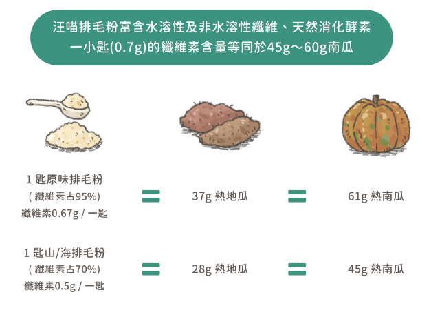 排毛粉:成分天然,僅添加洋車前子&菊苣纖維與日本頂級天野酵素以及好的油脂(魚油、亞麻仁油)。