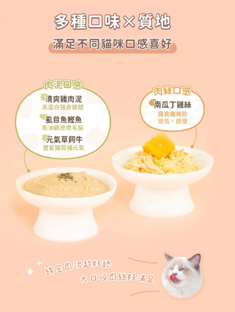 低脂罐使用新鮮原肉製成,並加入天然食材熬煮的高湯,香氣超濃郁!低內臟配方設計,減少腥味、口味更清爽!綿密肉泥&嚼感肉絲兩種質地選擇,可以滿足不同口感喜好的貓咪唷~