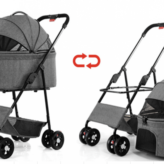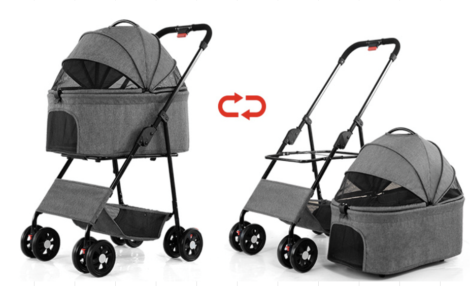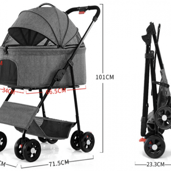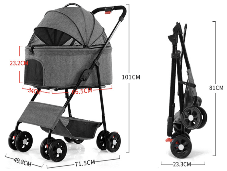 【食犬實美】貓狗通用|小中型可折疊寵物車-亞麻灰