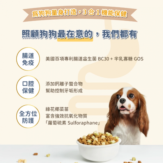 • 85%新鮮原肉+12%蔬果食材+3%機能保健