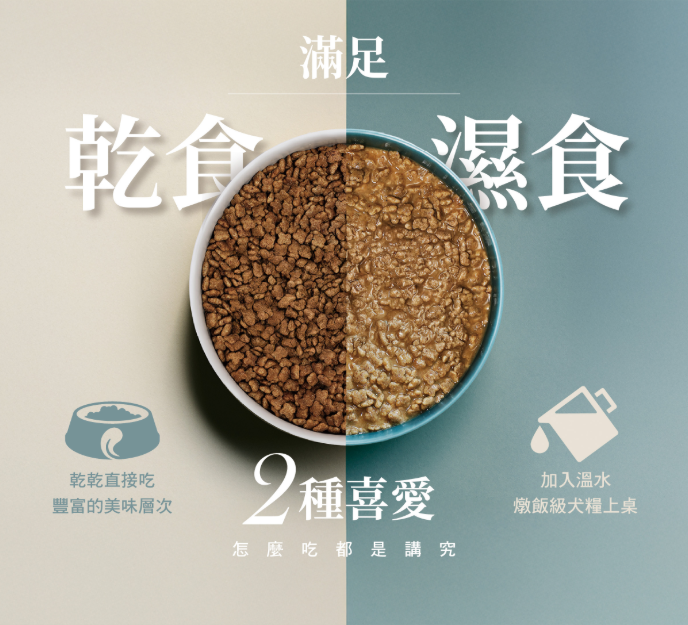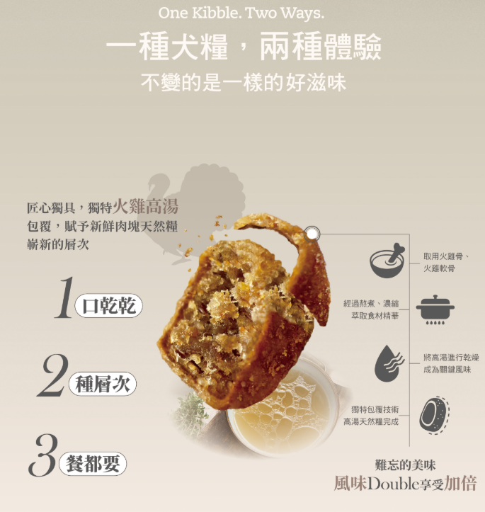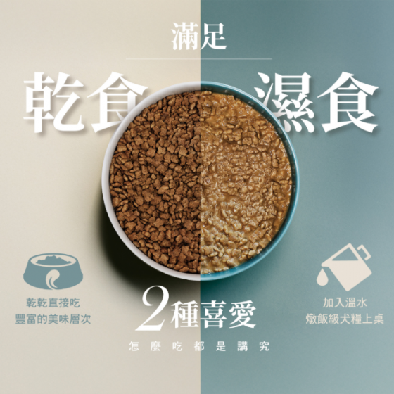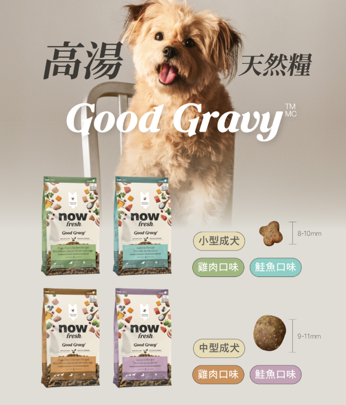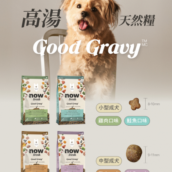 now高湯天然糧,一種犬糧兩種體驗。獨特火雞高湯粉包覆技術,一口乾乾,兩種層次,三餐都想要。乾食濕食接可搭配餵食,直接吃層次豐富,添加溫水,燉飯級犬糧上桌。使用去骨肉塊,外層採火雞高湯添加風味,均衡鈣磷比,維持骨骼健康與生理機能。搭配天然蔬果,以及古代穀物,提供必需維生素B群及礦物質。分別有小型犬及中型犬配方,口味分別是雞肉及鮭魚。全程低溫製作,第一手新鮮優質油品搭配20種以上的天然蔬果,專為不同體型狗狗設計,獲得WDJ連續推薦犬糧。
