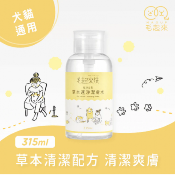 草本潔淨配方,可迅速清除毛孩身上的髒汙與異味,一次達到清潔、消臭、爽膚的功效。 適合外出後、排泄後之清潔,或暫不方便洗沐時使用。